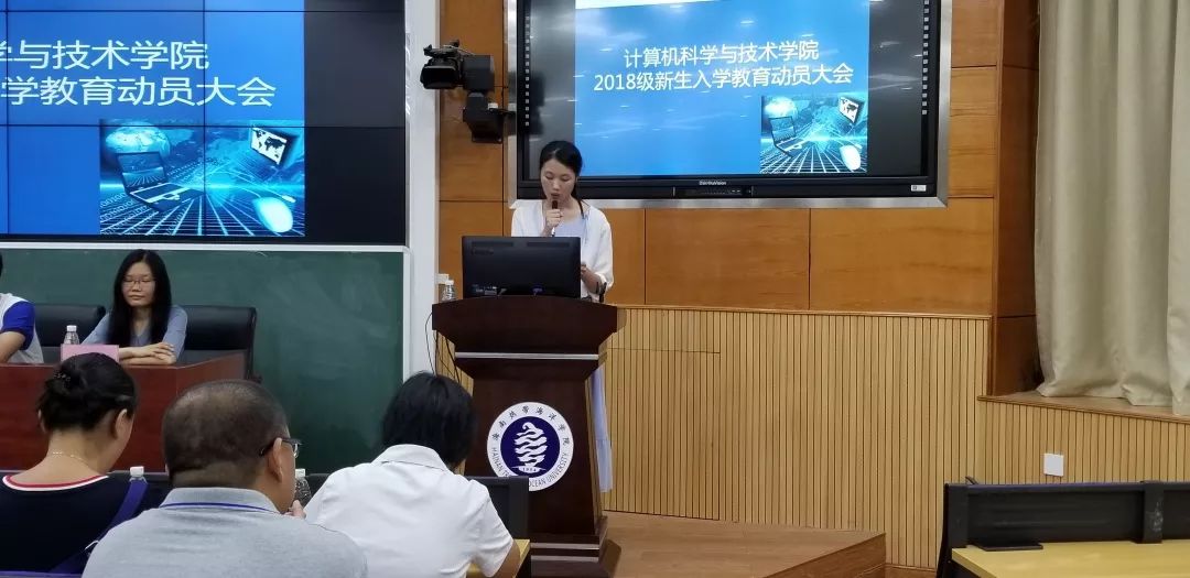 随着国歌的奏唱,动员大会正式开始。2018级计算机科学与技术班王清同学代表新生发言,分别从珍惜缘分、独立自强、坚持学习三个方面,代表新生表达了对于过好大学四年的决心。