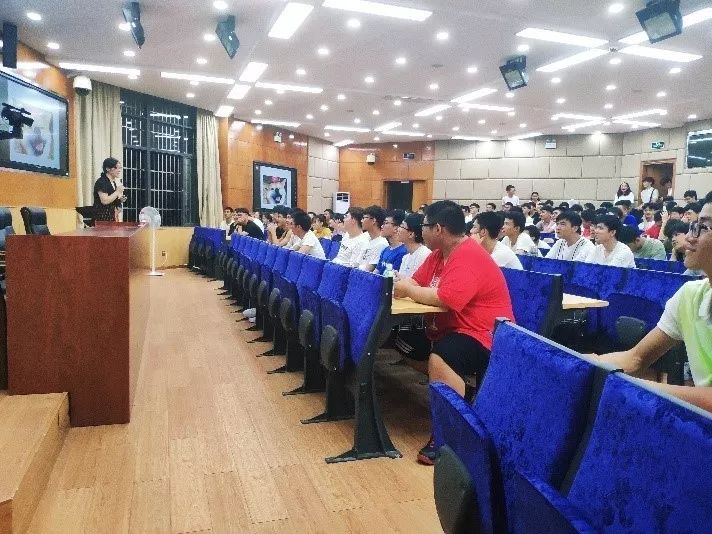 在讲座开始之初,许素萍教授通过新生之间的握手互动来活跃现场气氛并拉近新生之间的距离。她凭借着自己丰富的阅历和多年的工作经验与新生们进行生动形象的交流。从近期台风“山竹”引出话题,结合对事件的看法和应对模式,向大家讲述大学生拥有健康心理和乐观心态的重要性。