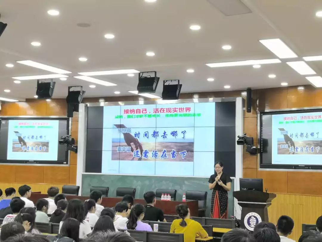 最后,许教授引导同学们积极地去关注身边被遗忘的事物。她列举澳大利亚著名演说家尼克胡哲的事例,告诉大家要勇于接纳自己,增强自信,用积极乐观的心态去面对生活中的每一件事。