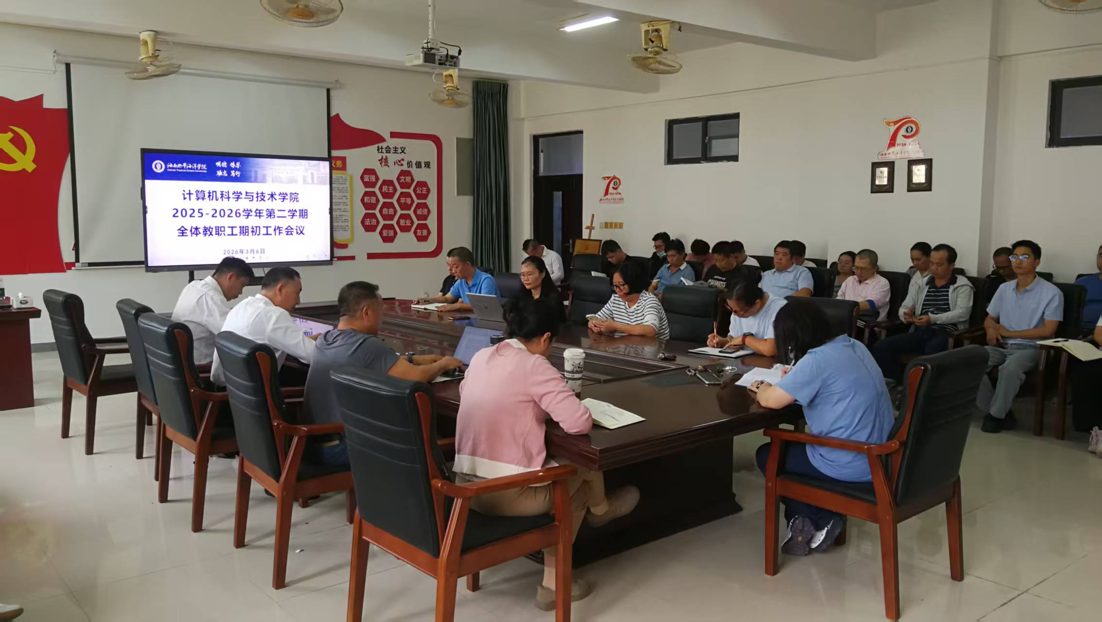 为全面部署新学期各项工作,明确目标任务、凝聚发展合力,3月6日下午,我院在9504会议室召开2026年春季学期期初工作会议,会议由院长文中华主持,院党委书记刘家宝、副院长汪文彬及全体教职工参加了会议。